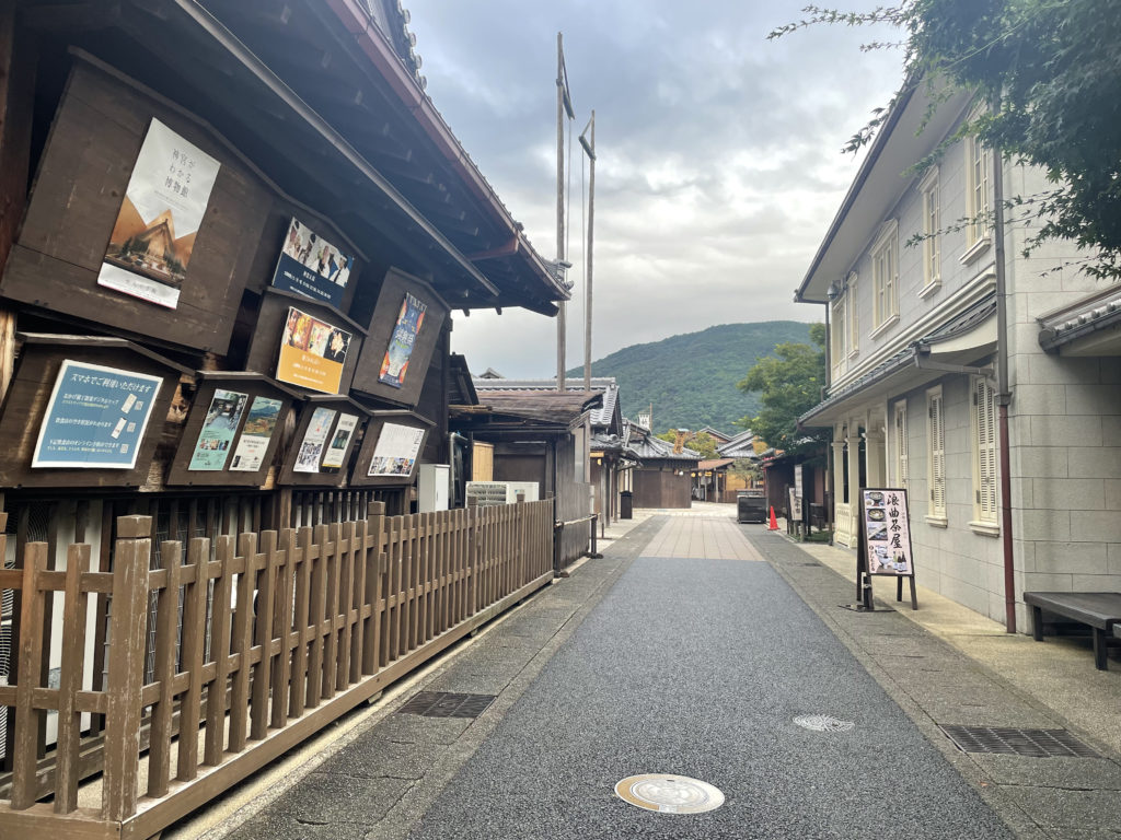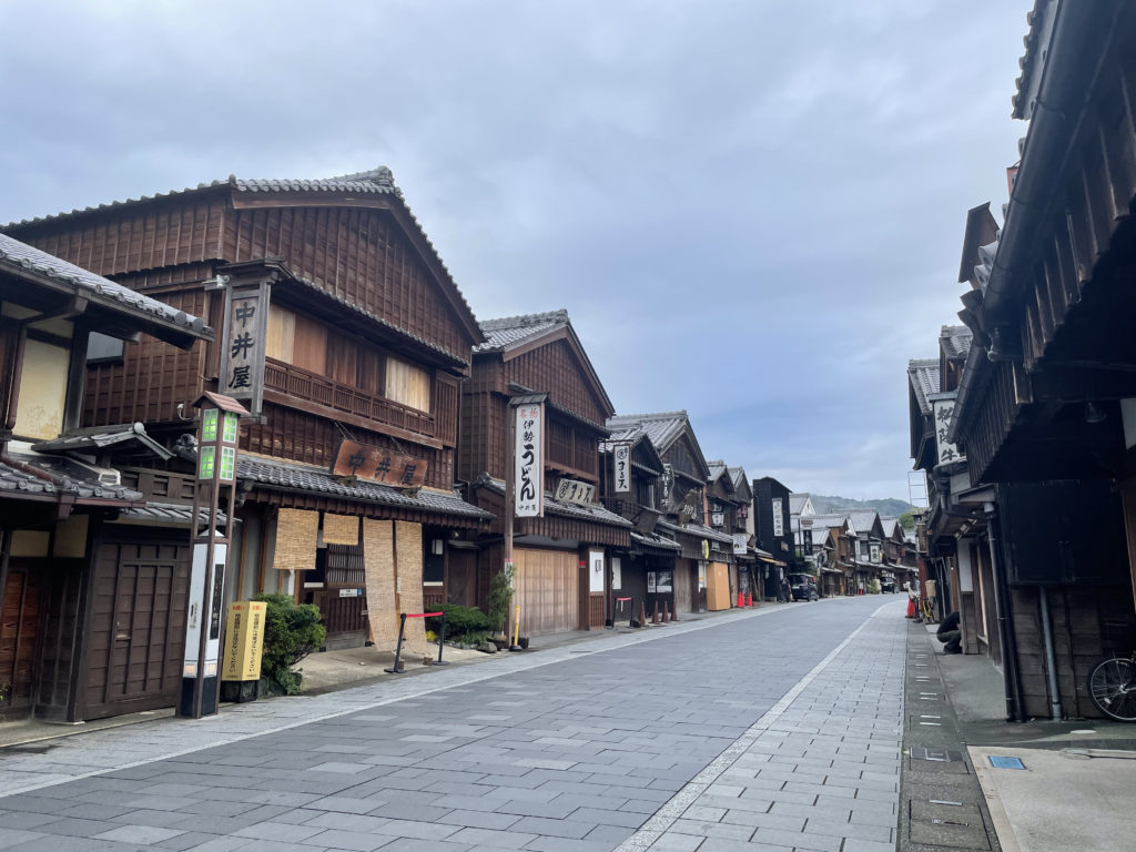 朝の7時20分のおかげ横丁。お店も開いていない時間帯なので、人もまばらで風情を感じます。
