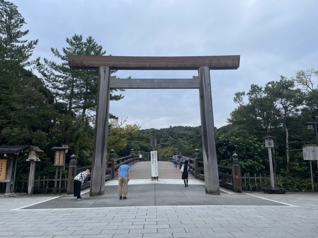 さっそく内宮の参拝から。大鳥居をくぐって宇治橋を渡ります。